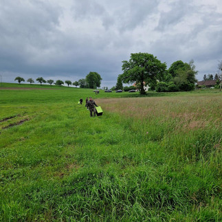 Die Kitze waren aber so mobil dass wir sie nicht fangen konnten, haben aber gleichzeitig die Fläche nicht verlassen und sind immer wieder ins hohe Gras geflüchtet. So dann ist undser Drohnenpilot mit der Drohne vor dem Mähwerk geflogen mit Funkverbindung zum Landwirt.